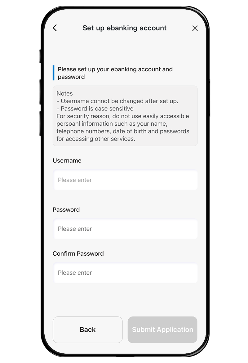 Application verification period varies according to the documents and information submitted, you will receive your initial application result via email and SMS within 1 day at the soonest, once you have received the successful application notification, the account(s) is/are ready but deposit and withdrawal functions are not available yet. When the final verification is completed, you will receive SMS notification on the status. The Bank has the absolute discretion to approve or reject the application during the final verification without giving any reason even the initial application result is passed.