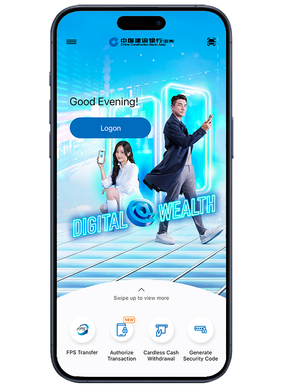 This promotion material is intended to be distributed in the Hong Kong Special Administrative Region ("Hong Kong") for reference only, and shall not be construed as an offer to sell or a solicitation of an offer or recommendation to purchase or sale or provision of any investment product in or outside Hong Kong. The promotion materials are issued by China Construction Bank (Asia) Corporation Limited which is a licensed bank regulated by the Hong Kong Monetary Authority, an approved insurance agent under the Insurance Ordinance (Chapter 41, Laws of Hong Kong) and a Registered Institution (CE No. AAC155) under the Securities and Futures Ordinance to carry on Type 1 (Dealing in Securities) and Type 4 (Advising on Securities) Regulated Activities. This promotion material has not been reviewed by any regulatory authorities in Hong Kong.