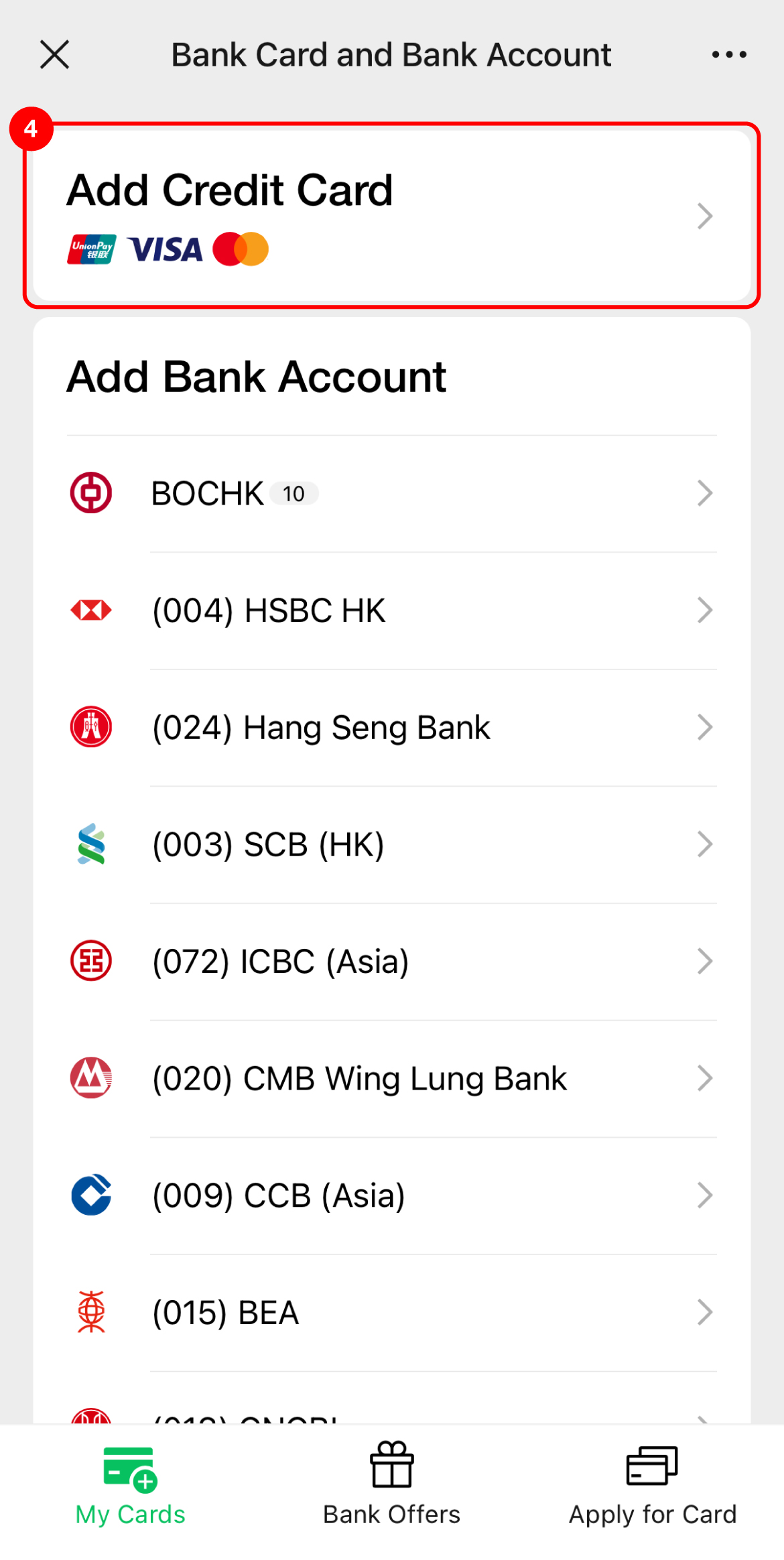 Bind CCB (Asia) Credit Card to WeChat Pay HK