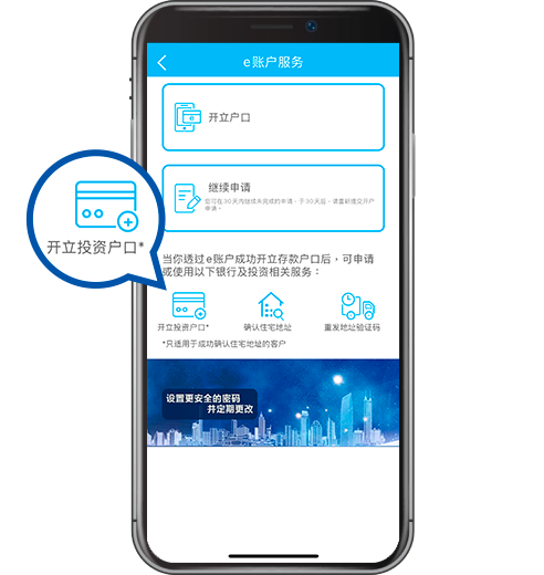 阁下需要完成住址验证,方可开立投资户口︰首先,登入手机银行,然后点击: