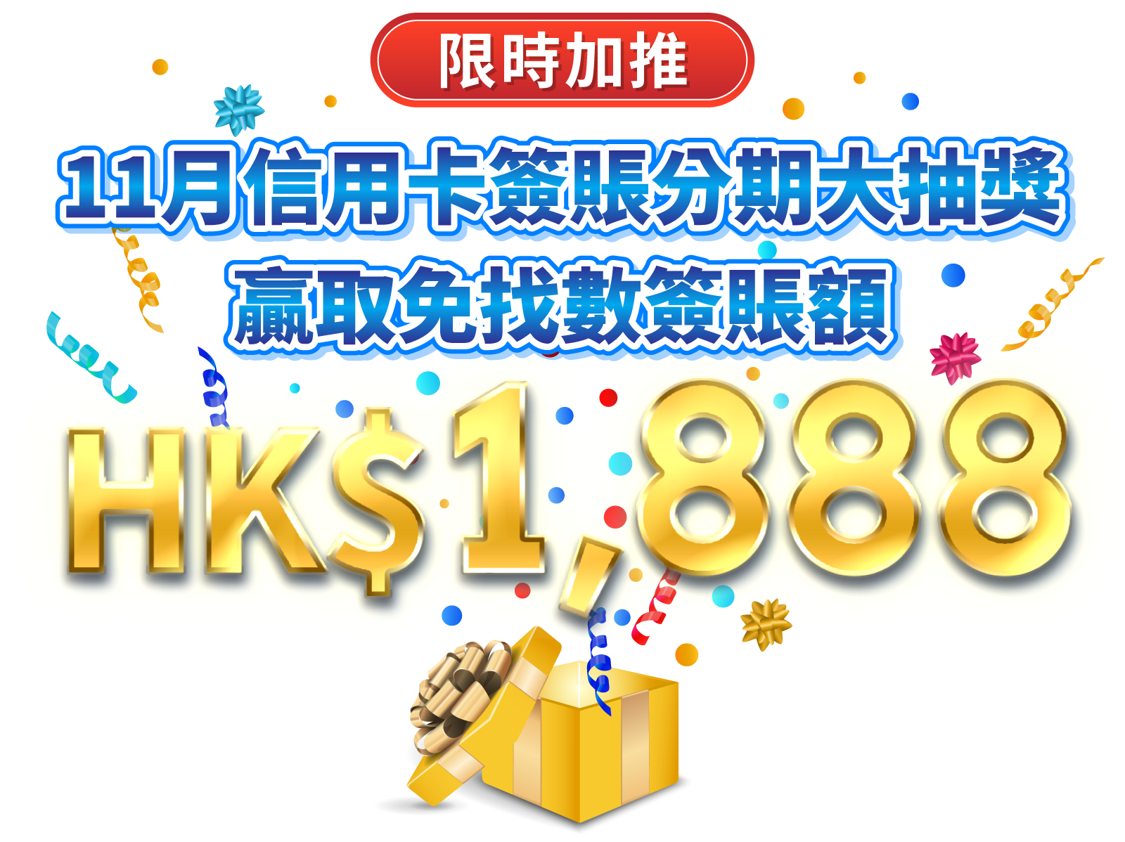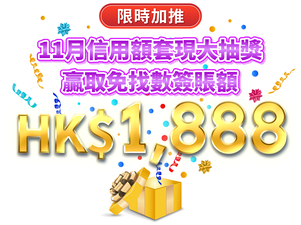 有機會贏取HK$1,888免找數簽賬額 (名額70名),